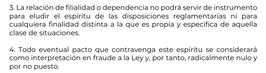 No obstante, hay dos “guardas” importantes en la normativa: (i) los requisitos generales de alineación —inscripción válida, licencia, edad, ausencia de suspensión, y figuración en el acta— contenidos en el artículo 248; y (ii) la regla anti-abuso del artículo 125 (3 y 4), que prohíbe que la relación filial/dependencia se utilice para eludir el “espíritu” de las normas federativas (interpretaciones o pactos que contravengan ese espíritu se consideran fraude de ley y nulos).