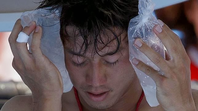 | Nishikori se aplica hielo para combatir el calor. (Foto: Reuters) |